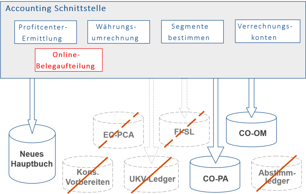 Das neue Hauptbuch unterstützt den Fast Close, um den Periodenabschluss zu beschleunigen. Durch die Online-CO-FI-Buchung entfallen der Abstimm-Ledger und damit die entsprechenden Nacharbeiten. Durch die Belegaufteilung ist keine Nachbelastung mehr erforderlich. Im Vergleich zu den Periodenabschlussaktivitäten sorgen die Online-Buchungen für eine deutliche Vereinfachung. Es gibt kaum Datenredundanzen, wodurch die Abschlussaktivitäten weniger werden.