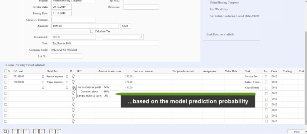 Invoice Object Recommendation unterstützt die Kreditorenabteilung bei ihrer Entscheidungsfindung durch die Vorhersage der Rechnungskontierungen. Der Vorschlag wird mittels Künstlicher Intelligenz auf der Grundlage bereits gebuchter historischer Daten errechnet.
